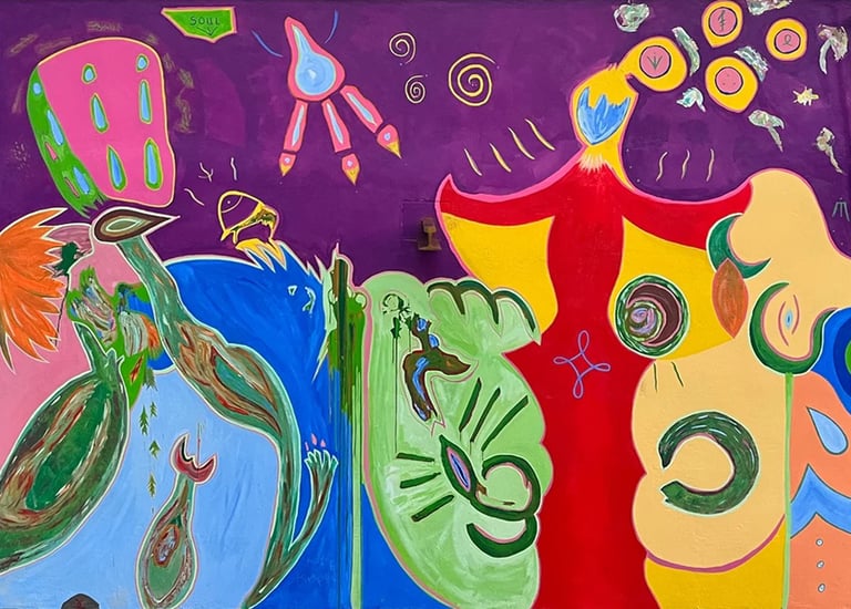 A Mural of just 16m2 that represents an infinity of light-years. A Portal that carries with it Mother Nature, the Elements, many different Beings, Codes and Light-Language.